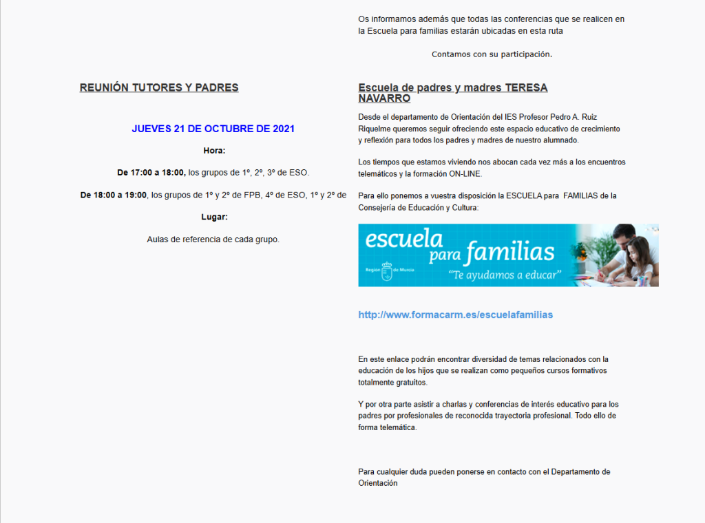 Horario de Atención a padres 24-25