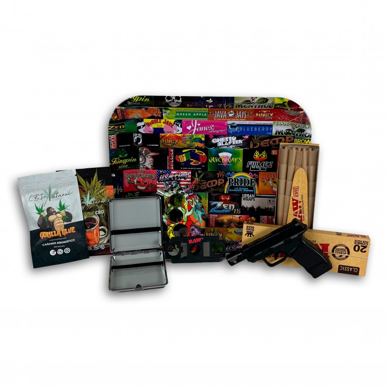 - Tendrás suficiente espacio para que puedas colocar sobre ella el librillo de papel para liar, boquillas de cartón o filtros, el grinder, mecheros, entre otros.