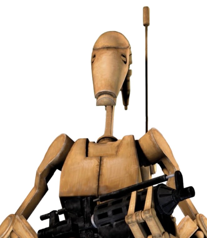 • Brazos largos y articulados: Tienen varias articulaciones simples que les permiten sostener blásters con ambas manos. Su movilidad no es muy precisa, lo que les da una apariencia torpe.